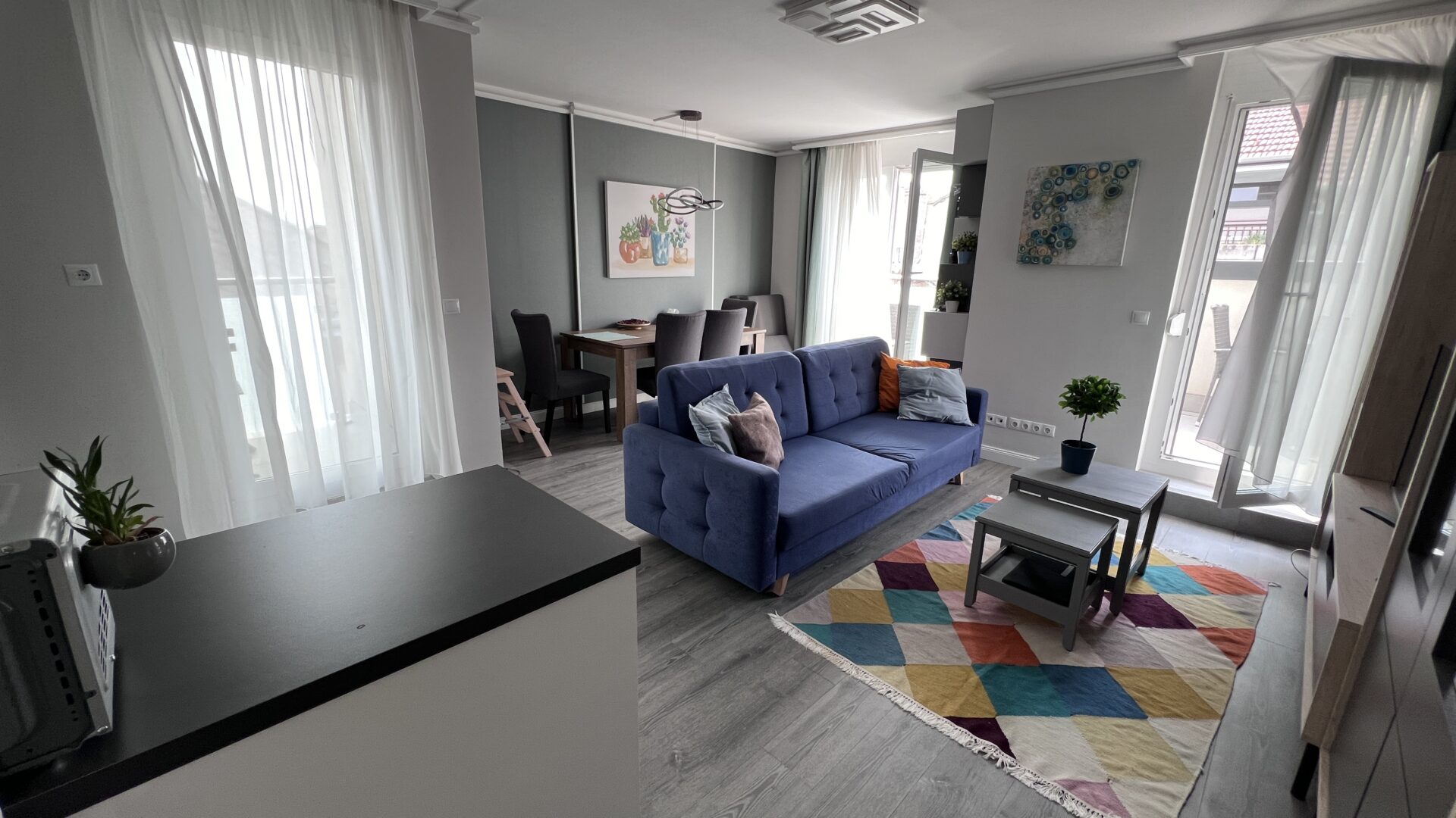 A lakás teljeskörűen gépesített és igény szerint a fotókon látható bútorok megbeszélés részét képezik.