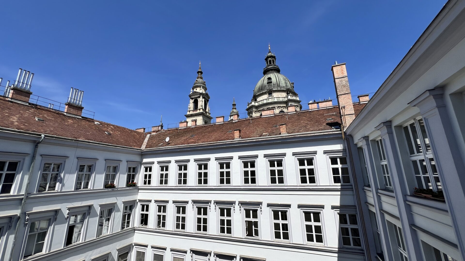 A lakás a belső udvarra néz és a Bazilika látható az ablakból!