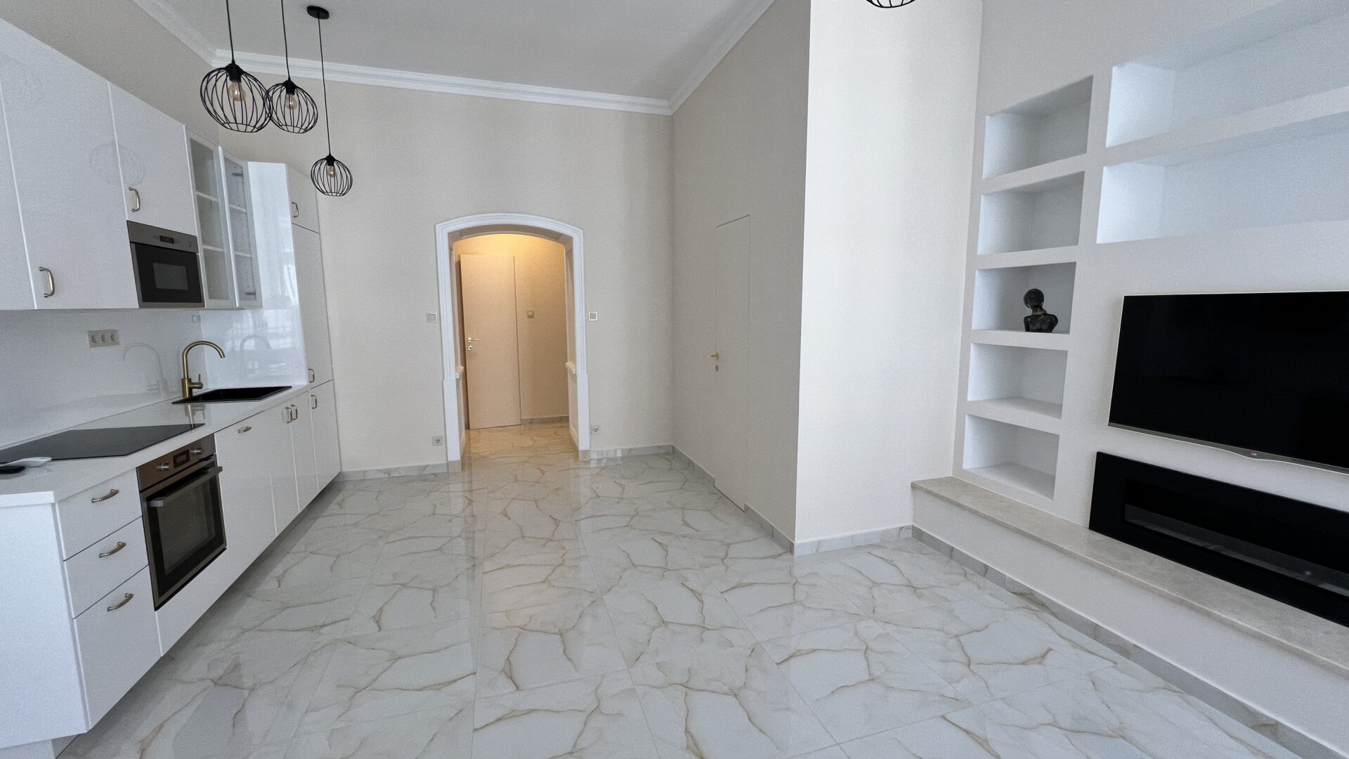 Közvetlenül a Bazilika melletti házban eladó egy két szobás, emeleti, világos, csendes, luxus szinten teljeskörűen felújított, amerikai konyhás lakás.