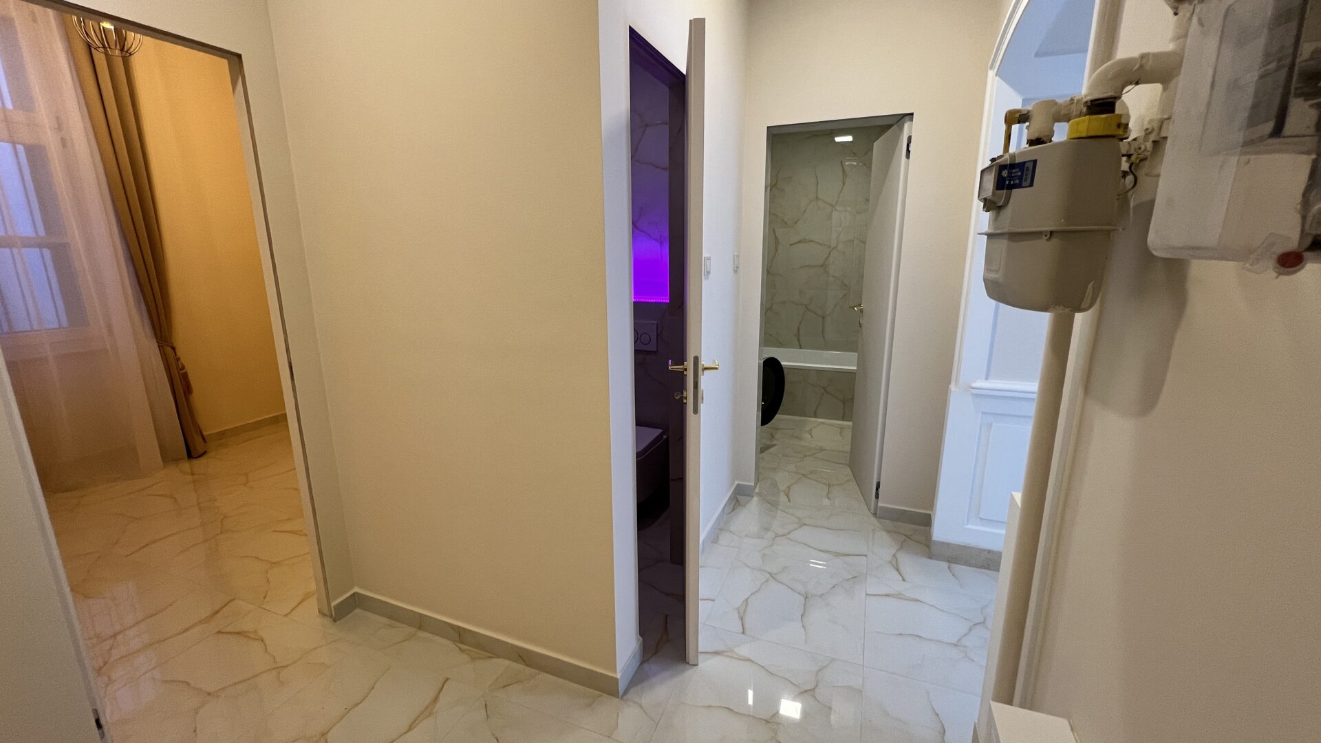 A tágas, látványkandallós nappaliból egy kis gardróbszoba nyílik. Az egész lakásban színes hangulatos legvilágítás is külön kapcsolható, a vadi új kondenzációs gázkazán gondoskodik a nagyon gazdaságos fűtésről.