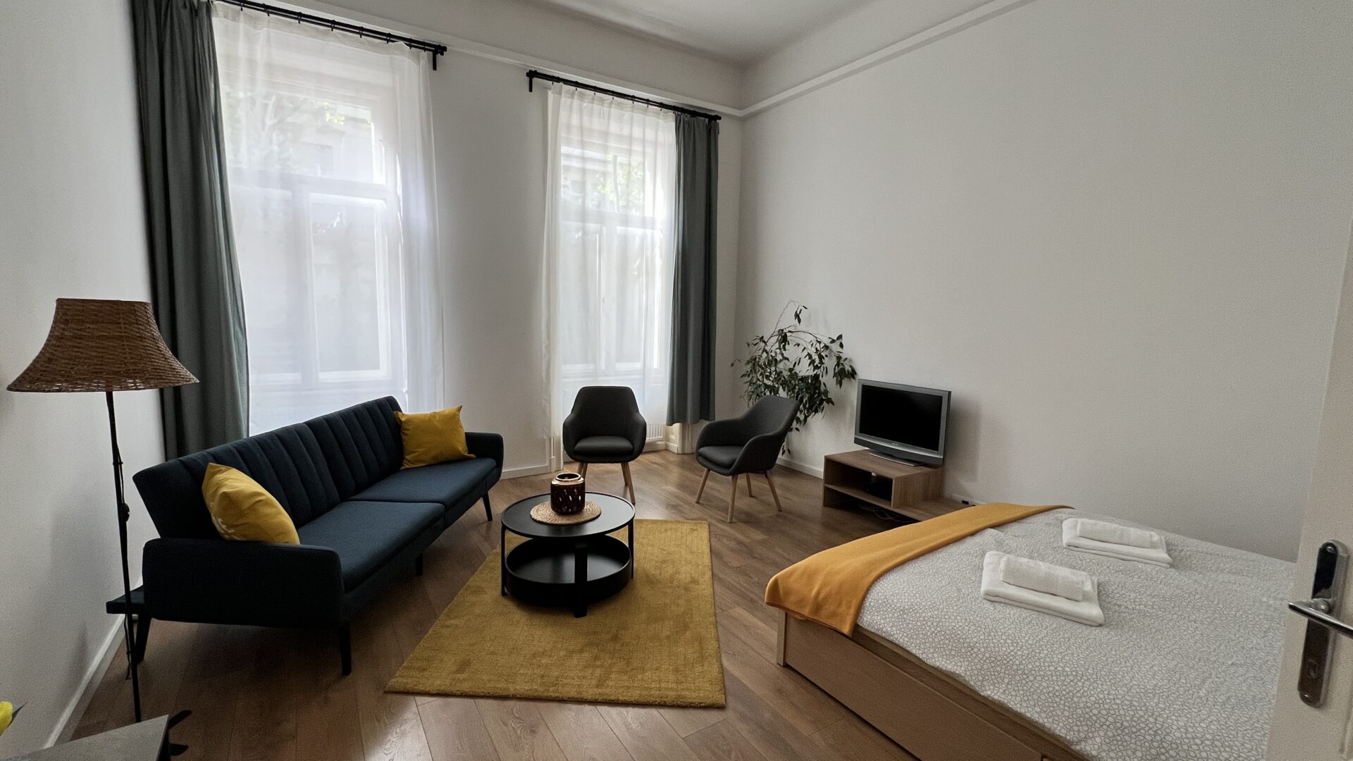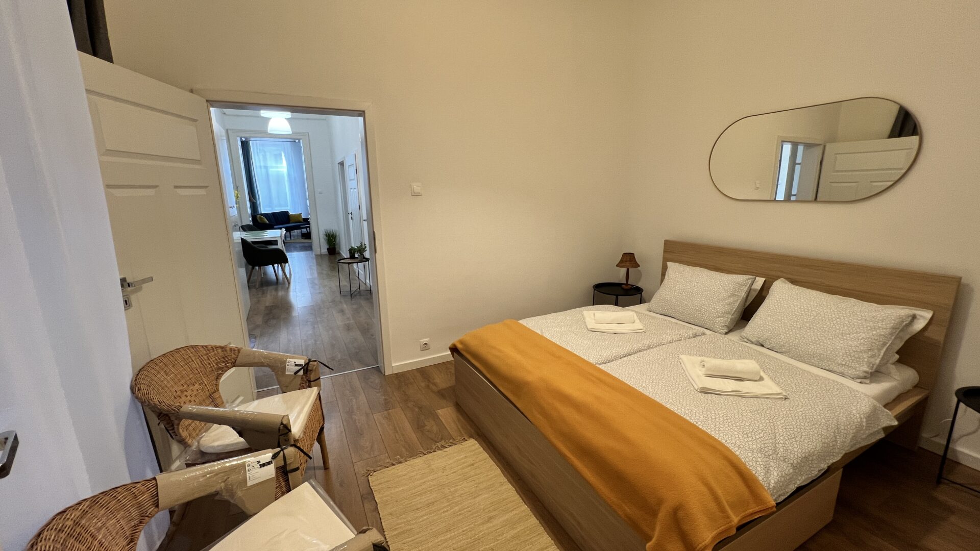 A VI. kerület egyik legjobb Belső-Terézvárosi utcájában, kiváló lokáció AirBnb (rövidtávú kiadás) szempontjából is, ami engedélyezett a házban, eladó ez az eredetileg 2 szobás, de a teljeskörű felújítást követően 2 és fél szobássá alakított, utcai nézetű, I. emeleti, nagyon világos lakás. Az AirBnb engedély 6 főre szól, de több vagy kevesebb vendég egyaránt kényelmesen elfér a lakásban.